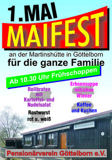 Wir, der Pensionärverein Göttelborn, laden hiermit die gesamte Bevölkerung zu unserer Maifeier am Donnerstag den 01.05.2025 ein.