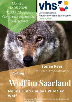Immer mehr Wölfe kehren in ihre alte Heimat zurück. Wie ist die aktuelle Situation in Deutschland und im Saarland? Der Vortrag entführt in die spannende Welt der Wölfe: Wie leben, wohnen und jagen sie?