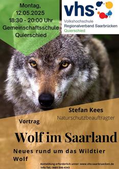 Immer mehr Wölfe kehren in ihre alte Heimat zurück. Wie ist die aktuelle Situation in Deutschland und im Saarland? Der Vortrag entführt in die spannende Welt der Wölfe: Wie leben, wohnen und jagen sie?