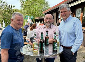 Brügermeister Lutz Maurer (rechts) mit Ortsvorsteher Peter Saar (Mitte) und dem neuen Schülerlotsen Jürgen Stiehler beim Maifest des Pensionärsvereins in Göttelborn.