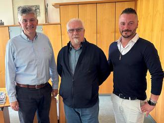 Bürgermeister Maurer (links) und Baubetriebshof-Leiter Mario Morreale (rechts) mit Herrn Guerreri.