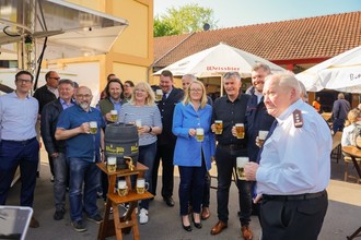 Schon am Mittwochabend, 17. Mai, war rechtzeitig zum Fassanstich, den Bürgermeister und Chef der Wehr Lutz Maurer zusammen mit der Ersten Gemeindebeigeordneten Eva Bastian erfolgreich in Angriff nahm, viel los. Bürgermeister Maurer und Ortsvorsteher Stefan Ziegler nutzten die Gelegenheit, sich bei den Freiwilligen Feuerwehrleuten in der Gemeinde für ihren unermüdlichen Einsatz zu bedanken: „Im Namen aller Bürgerinnen und Bürger der Gemeinde bedanke ich mich recht herzlichen bei allen Kameradinnen und Kameraden für ihr großes Engagement und ihren ehrenamtlichen Einsatz“, sagte Maurer. Der anschließende „Dämmerschoppen“ mit musikalischer Untermalung durch „DJ Walter vom Schalter“ ließ den ersten Tag des Fests angemessen ausklingen.