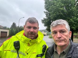 Wehrführer Christian Peter (links) und Bürgermeister Lutz Maurer waren rund um die Uhr im Einsatz.