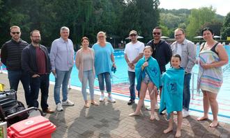 „Ich bin sehr froh, dass wir trotz der angespannten Situation auf dem Arbeitsmarkt im Bereich der Bäderfachangestellten und im Gegensatz zu manch anderen Bädern in der nun laufenden Badesaison eine ausreichende Personalisierung vorweisen können“, sagte Bürgermeister Lutz Maurer und begrüßte die Staatssekretärin im Bildungsministerium, Jessica Heide, sowie die Erste Gemeindebeigeordnete Eva Bastian, die stellvertretende Ortsvorsteherin von Quierschied, Angelika Schumacher, Ortsvorsteher Marcus Jung (Fischbach-Camphausen), die zusammen mit Schwimmmeister Christian Straßburger für das Freibad zuständige stellvertretende Hauptamtsleiterin Antje Dörr und die weiteren Vertreterinnen und Vertreter der Verwaltung und des Gemeinderats. Maurer bedankte sich bei Schwimmmeister Christian Straßburger, der zusammen mit seinem Team und den Kolleginnen und Kollegen des Baubetriebshofs der Gemeinde in den vergangenen Wochen und Monaten alles dafür getan hat, dass die Gäste sich auch in diesem Jahr „im schönen Freibad mitten in Quierschied wohlfühlen können. Auch dem Förderverein Freibad Quierschied gilt mein Dank für die zahlreichen Anschaffungen, mit denen die großen und kleinen Badegäste ihr Freude haben werden.“ Davon ist auch Marion Prinz-Adam überzeugt, die sich als Vorsitzende des Fördervereins vor allem bei den vielen Kuchenspenderinnen und -spendern bedankt, mit deren Hilfe der Verein die Einnahmen für die Finanzierung solcher Anschaffungen generieren kann.