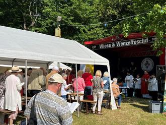 „Stimmung und Wetter waren perfekt, die Wiese zu allen Programmpunkten vollbesetzt und vor allem der Wenzelrock war sehr gut besucht“ – so lautet das Fazit von Detlef Fecht nach dem 59. Wiese- und Wenzelfechd in Quierschied: „Wir konnten uns nicht an ein vergleichbares Fest in der Vergangenheit erinnern“, freute sich Fecht, der 2. Vorsitzende des ausrichtenden Mandolinen- und Gitarrenvereins. Dieser wurde insbesondere für das vielfältige Spielangebot für Kinder gelobt, zu dem neben einer Wippe, Schaukeln, Fußball- und Federballspiele auch ein extra aufgebauter Sandkasten gehörte. Auch war die heilige Messe am Pfingstmontag sehr gut besucht.