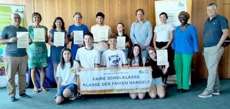 Im Rahmen einer Feierstunde durfte Bürgermeister Lutz Maurer am Montag, 12. Juni 2023, zusammen mit Lillian Petry und Peter Weichardt von der Fairtrade Initiative Saarland acht Schulklassen mit dem Titel einer „Fairen Schulklasse - Klasse des Fairen Handels“ auszeichnen: Die Klassen 6.1, 6.2 und 6.3 sowie die Klassen 7.1, 7.2 und 7.3 und die Klassen 8.1 und 8.3 der Gemeinschaftsschule Quierschied wurden dabei für ihr Engagement für den Einsatz und den Handel von und mit fair hergestellten Produkten in den Schuljahren 2021/22 und 2022/23 geehrt.