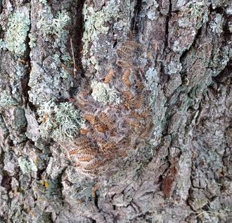 Aufgepasst: Der Eichenprozessionsspinner ist ein eher unscheinbarer, graubrauner Nachtfalter. Als Schmetterling ist er harmlos, aber als Raupe trägt er Gifthaare, die auf der Haut und an den Schleimhäuten der Menschen allergische Reaktionen hervorrufen können. Da sich diese Art in den vergangenen Jahren massenhaft vermehrt hat, ist also bei Waldspaziergängen Vorsicht geboten.
