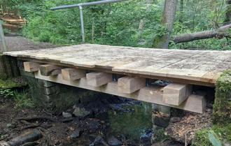 Die kleine Brücke im Bereich des Gewerbegebiets Heidekorn Quierschied, die über den Altwiesbach in Richtung Wald führt, musste wegen Baufälligkeit aus Sicherheitsgründen monatelang gesperrt werden. Die Brücke dient Spazierenden auch als Verbindungsweg zur Hochstraße/Am Hochwald. In Kooperation mit der Gemeinde Quierschied, dem SaarForst Landesbetrieb und der Firma Heizöl Willi Meiser haben Vereinsmitglieder des Obst- und Gartenbauvereins (OGV) Quierschied die alte Brücke zunächst rück- und dann wieder neu aufgebaut.
