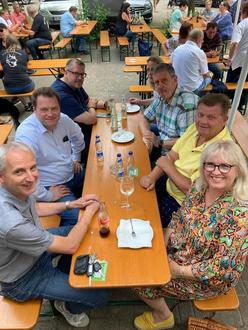 Zum Sommerfest des Vereins für Deutsche Schäferhunde (SV) – LG Saarland, das am vergangenen Samstag am Hundeplatz Am Glückauf in Quierschied stattfand, waren unter anderem Ortsvorsteher Stefan Ziegler (links vorne), Sulzbachs Bürgermeister Michael Adam (2. von links) und in Vertretung des Schirmherrn, Bürgermeister Lutz Maurer, auch die Erste Gemeindebeigeordnete Eva Bastian (rechts vorne).