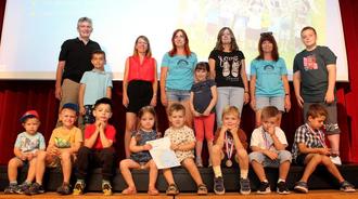 Sieger „Km absolut“: Bürgermeister Lutz Maurer mit einem kleinen Teil des Teams „Kita Villa Regenbogen“.