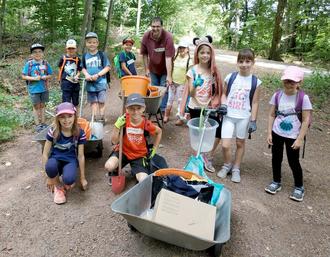 Es war die erste Aktivität im Rahmen des Ferienprogramms der Gemeinde Quierschied – und sie war gleich ein voller Erfolg: Die beliebte Spazier-, Wander- und Joggingstrecke „Untere Reitbrücke“ ist nun um eine Attraktion reicher. Unter Anleitung von Annette Bost (Gemeinde Quierschied) und Stefan Kees (Naturschutzbeauftragter Quierschied) bauten zehn Mädchen und Jungen im Alter zwischen fünf und elf Jahren aus Naturmaterialien einen Barfußweg. Er findet sich etwa auf halber Strecke der unteren Reitbrücke, ganz in der Nähe der Abzweigung ins Lasbachtal und in unmittelbarer Nähe zu einer Bank, die sich hervorragend zum aus- und wieder anziehen der Schuhe eignet. Der Barfußweg darf ausdrücklich für alle da und darf – mit der Bitte um pfleglichen Umgang – von jeder und benutzt werden!