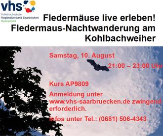 Auf einer geführten, ungewöhnlichen Nachtwanderung am Kohlbachweiher tauchen wir in die Lebenswelt der Fledermäuse ein.