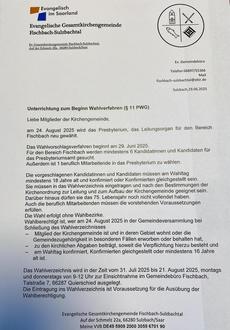 Am 24.08.2025 findet im Anschluss an den Gottesdienst eine Gemeindeversammlung statt. In dieser Versammlung wird das neue Presbyterium gewählt (s. beigefügter Brief)
