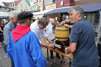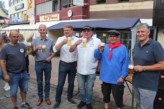 „So ein gutes Wetter hatten wir ewig nicht. 2003 war das letzte Mal, als wir keinen einzigen Regentag dabei hatten“, sagt Ute Recktenwald und strahlt dabei selbst wie die Sonne an den vier Tagen des Wambefeschds 2022. Die für das Fest zuständige Gemeinde-Mitarbeiterin ist wie ihr Chef, Bürgermeister Lutz Maurer, auch von der Vielzahl der Besucherinnen und Besucher begeistert, die an allen Tagen in die Quierschieder Ortsmitte strömten. Nach zwei Jahren Corona-Zwangspause war dies so nicht zu erwarten gewesen. „Endlich darf ich Sie nach zwei Jahren Durststrecke wieder hier begrüßen“, sagte Bürgermeister Maurer bei der offiziellen Eröffnung des Festes am Freitag, 19. August. Beim anschließenden Fassanstich durch Schirmherr Torsten Lang, Staatssekretär im Innenministerium, mussten Bürgermeister Maurer, Ortsvorsteher Stefan Ziegler sowie Wolfgang Schug (Club Fröhlichkeit/Die Quierschder Wambe), Claudio Marcello (ASC Quierschied) und Patrik Pabst (Gasthaus „De Pabschd“) mit anpacken, um dem Fass das begehrte Innere zu entlocken. Neben den Genannten fanden zahlreiche Funktionsträgerinnen und Funktionsträger aus der Gemeinde und der Umgebung den Weg zum Wambefeschd. Darunter auch die Erste Beigeordnete der Gemeinde, Eva Bastian und die Ortsvorsteher Markus Jung (Fischbach-Camphausen) und Peter Saar (Göttelborn) sowie Christian Jung (Bürgermeister der Stadt Friedrichsthal), Mary Rose Bahmer (Erste Beigeordnete der Stadt Sulzbach), Paul Pendorf vom Heimat- und Verkehrsverein und viele Vertreterinnen und Vertreter der Vereine, des Gemeinderats und der Gemeindeverwaltung.
