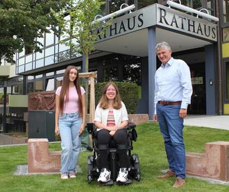 V.li.n.re.: Mariella Greco, Emma Wagner und Bürgermeister Lutz Maurer.