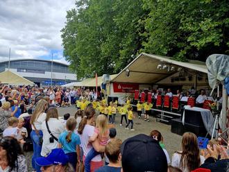 Der Sonntag begann besinnlich mit einem ökumenischen Gottesdienst, gestaltet von Pastor Kerwer (kath.) und Pastor Kaspari (ev.), musikalisch begleitet vom ökumenischen Frauenchor. Beim anschließenden Frühschoppen unterhielt der Shanty-Chor unter Leitung von Claudia Meister, bevor am Nachmittag die Sonne herauskam und die Original Fischbacher Musikanten mit Dirigent Norbert Aulenbacher für den musikalischen Rahmen sorgten. Ein Highlight war das bunte Kinderprogramm in der Fischbachhalle: Hüpfburgen, Parcours, Kinderschminken und Glitzertattoos ließen keine Wünsche offen. Organisiert wurde es von den Fördervereinen der Grundschule, der Kita Pusteblume und dem Verband für Wohneigentum. Große Begeisterung weckte zudem die Show von Herrn von Bauch, der mit seinen Koffern voller Überraschungen Groß und Klein eine Stunde lang verzauberte. Zum Abschluss brachte die Formation ALiSa Dreiklang das Publikum noch einmal vor die Bühne, animierte zum Mitsingen und Tanzen und setzte so den perfekten Schlusspunkt unter ein gelungenes Fest.