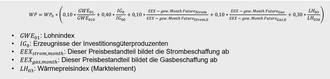 | Jedes Quartal werden die aktuellen Indices (siehe Legende) in die Formel eingesetzt, wodurch sich der jeweils neue Quartalspreis berechnet. |