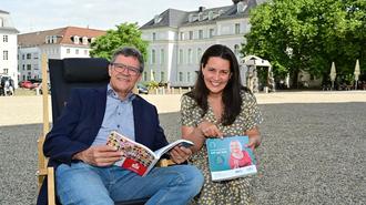 Regionalverbandsdirektor Peter Gillo und vhs-Direktorin Dr. Carolin Lehberger werfen einen Blick in das neue vhs-Semesterprogramm