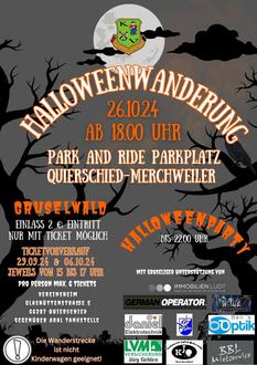 unser Vorverkauf für unsere HALLOWEENWANDERUNG am 26.10.2024 startet am 29.09. und am 06.10. (sofern noch Bändchen vorhanden) jeweils von 15 bis 17 Uhr in unserem Vereinsheim Glashüttenstraße 5 (gegenüber Aral-Tankstelle).