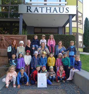 Wir begannen damit, die 10 wichtigsten Kinderrechte ganz genau unter die Lupe zu nehmen. Einige Rechte waren ganz leicht zu verstehen, wie zum Beispiel, dass alle Kinder die gleichen Rechte haben, egal woher sie kommen oder wie sie aussehen. Dass alle Kinder ein Recht auf Geborgenheit, Gesundheit und Schutz haben, vor allem auch im Krieg. Außerdem stellten sie schnell fest, dass man für seinen Traumberuf, wie Astronaut, Archäologin, Tänzerin oder Tierarzt erst einmal etwas lernen muss und es deshalb so wichtig ist, dass Kinder ein Recht auf Bildung haben. Im Laufe der letzten Wochen wurde ihnen durch das Thema „Kinderrechte“ nochmal bewusst, dass sie ein Mitbestimmungsrecht haben, bei Dingen und Fragen, die sie betreffen. Einige Beispiele waren zum Beispiel die Gestaltung der Gruppenräume in der KiTa, was sie anziehen möchten oder auch mit wem sie gerne spielen möchten. Leider mussten wir aber auch feststellen, dass noch immer nicht alle Staaten dieser Welt den UN-Kinderrechtsvertrag unterschrieben haben. Wir beschäftigten uns mit der Frage „Was wünschen wir diesen Kindern, die nicht das Recht auf Bildung oder vor Schutz und Gesundheit haben?“ Die Antworten gingen direkt ins Herz: Freiheit, genug zu essen, kein Krieg mehr, ein Haus mit ganz viel Liebe und eine Familie, die immer auf die Kinder aufpasst- denn Familie ist das Wichtigste auf der Welt. Nachdem wir die Frage geklärt haben, was ein Vertrag ist, entschlossen wir uns einen eigenen Kinderrechtsvertrag für unsere Kita aufzusetzen. Am 13.09.2024 war es dann auch so weit: Die Vorschulkinder trafen sich mit allen Erzieherinnen, um den Vertrag mit allen Unterschriften gültig zu machen. Anschließend führte uns unser Weg ins Rathaus, wo Nicole Christmann, die pädagogische Gesamtleitung der Gemeinde Quierschied, auf uns wartete, um unseren Kinderrechtsvertrag ebenfalls zu unterzeichnen. Die Kinder erklärten ihr nochmal ganz genau, was Kinderrechte eigentlich sind und wieso sie so wichtig sind. Hier konnte man deutlich heraushören, dass die Kinder sich mit dem Thema ganz intensiv auseinandergesetzt haben. Zum Schluss ging es zurück in die KiTa und gemeinsam feierten wir die Vertragsunterzeichnung mit den Worten: „Besonders ist doch jedes Kind, wie schön, dass wir zusammen sind!“ Jetzt freuen wir uns auf unsere Weltkindertags-Party am 20.09.2024 in unserer Kita. Sie dürfen gespannt sein…J