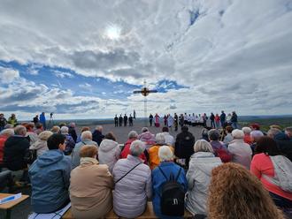 Zahlreiche Gläubige waren auf die Göttelborner Halde gepilgert – viele zu Fuß, darunter auch Bürgermeister Lutz Maurer. Manch andere nutzten den Shuttleservice der Firma BBL, der es vor allem mobil eingeschränkten Besucherinnen und Besuchern ermöglichte, an der Zeremonie am höchsten Punkte der Halde teilzunehmen.