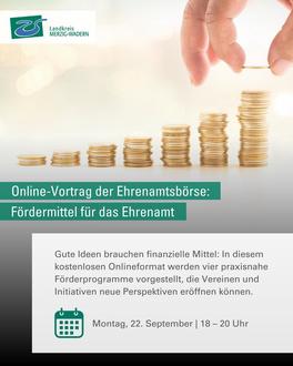 Die Ehrenamtsbörse des Landkreises Merzig-Wadern lädt alle Vereine, gemeinnützigen Organisationen und ehrenamtlich Engagierten am Montag, 22. September, von 18 bis 20 Uhr herzlich zu einem Onlineseminar zu konkreten Fördermöglichkeiten zur finanziellen Unterstützung gemeinnütziger Projekte ein.