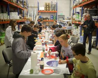 Am Mittwoch, 17. September 2025, war eine sechste Klasse des Theodor-Heuss-Gymnasiums anlässlich des Themenwandertages der Schule bei der traditionsreichen Malerfirma „Daniel GmbH“ in Quierschied zu Besuch. Die jungen Schülerinnen und Schüler wurden von Frau Philipp und Herr Mazzotta durch den Betrieb geführt und lernten dabei viel über die Farbenlehre oder auch, wie eine Mischmaschine funktioniert. Nach einer kleinen Pause mit Laugenstangen und Gebäck wurde jedem Kind ein Keilrahmen zum „Selbermalen“ überlassen. „Es freut mich, dass wir so Werbung für das Handwerk machen konnten“, sagt Firmenchef Dirk Daniel. Auch Bürgermeister Lutz Maurer begrüßte den Besuch der Schülerinnen und Schüler in seiner Gemeinde: „Es bleibt dabei: Das Handwerk hat goldenen Boden. Ich bin sehr froh darüber, dass es in der Gemeinde Quierschied solche alteingesessene Unternehmen gibt, die zeigen, was man mit guter, ehrlicher Arbeit erreichen kann.“