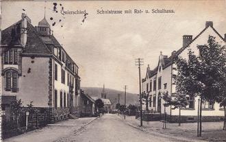 heutige Rathaushausstraße im Jahr 1914 mit Rat- und Schulhaus