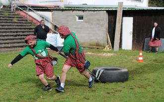 Spiele wie das LKW-Reifen-Ziehen sorgten für beste Stimmung bei den 1. "Heher Higland Games".