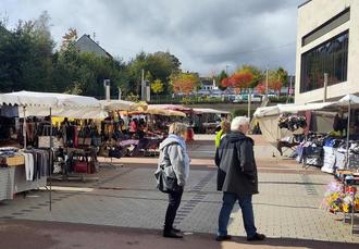 Am Donnerstag, 10. Oktober 2024, fand in der Quierschieder Ortsmitte der alljährliche Herbstmarkt statt. Bürgermeister Lutz Maurer und der zuständige Gemeindemitarbeiter Ralf Beul freuten sich über zahlreiche Besucherinnen und Besucher, die zwischen den unterschiedlichen Verkaufsständen schlenderten und das vielfältige Angebot auf sich wirken ließen: Unter anderem Duftsteine, exklusive Gewürzmischungen, edle Weine und Schnäpse, Wildspezialitäten, Haushaltswaren und -Geräte, modische Kleidung, ein Schlüsseldienst, Säfte, Liköre und Marmeladen, Süßwaren, Stoffe, Handtücher, Schals, Schmuck, Unterwäsche, Taschen, Lederwaren, Tee oder Schuhe. Zum wohl letzten Mal vor seinem Eintritt in den Ruhestand im kommenden Jahr war der seit 26 Jahren für die Märkte zuständige Gemeinde Mitarbeiter ist Ralf Beul vom Ordnungsamt verantwortlich. „Er hat dafür gesorgt, dass sich die Märkte in der Gemeinde - entgegen dem Trend in anderen Kommunen - nach wie vor großer Beliebtheit erfreuen“, sagt Bürgermeister Lutz Maurer und ergänzt: „Um auch mal neue Zielgruppen ansprechen und für diese traditionelle Art der Begegnung zu begeistern, wollen wir die Konzeption in den kommenden Jahren weiter verbessern.“