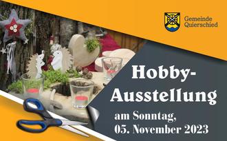 Die Gemeinde Quierschied veranstaltet am Sonntag, 05. November 2023, von 10 bis 17 Uhr in der Fischbachhalle (Quierschieder Straße 80) in Fischbach-Camphausen, die 20. Hobbyausstellung. Ausstellerinnen und Aussteller aus der Gemeinde und der Region präsentieren hier ihre kreativen Werke: Strick- und Häkelarbeiten, handbemaltes Porzellan, Holzkunst und Schmuck aus unterschiedlichen Materialien sind ebenso zu bewundern wie Weihnachtsdeko, Näharbeiten und handgefertigte Badepralinen und vieles mehr.