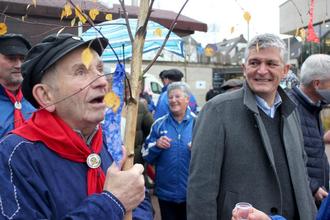 Seit über 100 Jahren wird in Quierschied der „Hammeltanz“ vollführt. Die Mitglieder des „Kittelclubs“, also des Clubs Fröhlichkeit, tanzen dann mit Unterstützung der Club-Frauen den „Straußebub“ aus. Am vergangenen Sonntag war es wieder einmal soweit. Etwa 300 Schaulustige waren in die Ortsmitte gepilgert, wo die Männer und Frauen des Kittelclubs – angeführt von „Lunte“-Erwin Deutsch - zunächst einen kleinen Umzug durch die Marien- und Rathausstraße bis auf den hinteren Teil des Marktplatzes vornahmen. Dort angekommen, entzündete der neue Verantwortliche, Ferdy Schmidt (ab sofort „Lunte-Ferdy“), nach der offiziellen und reimreichen Begrüßung durch Wolfgang Schug (Karnevalsverein Die Quierschder Wambe) und Bürgermeister Lutz Maurer die Lunte, die die Dauer der Zeremonie vorgab. Als sie nach etwa 15 Minuten die daran befestigte Flasche zu Fall brachte, war es der 85-jährige Josef Trenz, der zur großen Freude seiner Frau Gretel den zuvor herumgereichten Strauß in den Händen hielt – der neue Straußenbub war gefunden! Sowohl der Umzug wie auch die Zeremonie wurden von den Fischbacher Musikanten musikalisch begleitet. Weitere Programmpunkte steuerten die Quierschder Wambe und der Kneipp-Verein in der Q.lisse bei. Für das leibliche Wohl war Dank vierer „Foodtrucks“ mit breit gefächertem Angebot schon vor dem Hammeltanz bestens gesorgt. Bürgermeister Lutz Maurer, der wie Ortsvorsteher Stefan Ziegler zu den ersten Gratulanten gehörte, gratulierte dem neuen Straußebub recht herzlich und bedankte sich bei allen Beteiligten dafür, dass sie diese Tradition auch im Jahr 2023 fortführen und mit Leben füllen.