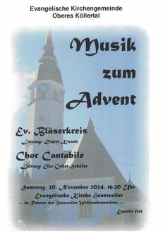 | 16:30 Uhr | Musik zum Advent in der Ev. Kirche Heusweiler |