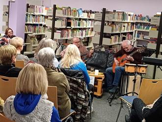 Am Freitag, 15. November, hatte die Volkshochschule Quierschied zu „Wohnzimmermusik & Couchliteratur“ in die Gemeindebücherei Quierschied eingeladen. Das Duo „Salle de séjour“, das sind Udo Grewenig und Günther Adolph, spielte u.a. Songs von Adamo, Beatles, Phil Collins und Sarah Connor in eigenen Interpretationen. Die Leiterin der Bücherei, Annette Bost, hatte besagte Couchliteratur mitgebracht und las aus unterhaltsamen Erzählungen vor.