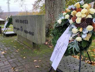 Am vergangenen Sonntag, 17. November 2024, dem Volkstrauertag, fand in der Einsegnungshalle auf dem Friedhof in Quierschied eine zentrale Gedenkfeier für die Millionen Opfer von Krieg und Gewaltherrschaft statt. Bürgermeister Lutz Maurer, die Ortsvorsteher Stefan Ziegler (Quierschied), Marcus Jung (Fischbach-Camphausen) und Peter Saar (Göttelborn) hatten zu der jährlichen Veranstaltung eingeladen. Die Gemeindebeigeordnete Eva Bastian, die Ortsvorsitzende des Sozialverbandes VdK in Quierschied, Giuseppina Klär, Vertreterinnen und Vertreter der Bergmannsvereine in der Gemeinde, des Deutschen Roten Kreuzes, zahlreiche Angehörige der Freiwilligen Feuerwehr Quierschied sowie Bürgerinnen und Bürger aus den drei Gemeindebezirken hatten sich auf dem Friedhof eingefunden. In ihren Ansprachen richteten Stefan Ziegler und Giuseppina Klär den Blick auf vergangene Kriege und Krisen, aber auch auf die schwierige aktuelle Weltlage und ihre enormen Herausforderungen. Die Zeremonie, in deren Rahmen auch eine Kranzniederlegung erfolgte, wurde von einem Bläserkreis aus Mitgliedern des Vereins der Musikfreunde Quierschied untermalt. Im Anschluss wurden am Schützenhaus Quierschied von Vereinsmitgliedern des Schützenvereins Tell drei Salutschüsse zu Ehren der Toten abgefeuert.
