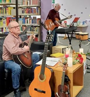 Am Freitag, 15. November, hatte die Volkshochschule Quierschied zu „Wohnzimmermusik & Couchliteratur“ in die Gemeindebücherei Quierschied eingeladen. Das Duo „Salle de séjour“, das sind Udo Grewenig und Günther Adolph, spielte u.a. Songs von Adamo, Beatles, Phil Collins und Sarah Connor in eigenen Interpretationen. Die Leiterin der Bücherei, Annette Bost, hatte besagte Couchliteratur mitgebracht und las aus unterhaltsamen Erzählungen vor. Der Eintritt war frei, doch bei einer Hutsammlung kamen insgesamt rund 370 Euro für das Kinderhospiz Merchweiler zusammen.