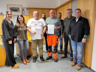 „Ich gratuliere Ihnen ganz persönlich zu diesem Jubiläum und bedanke mich im Namen aller Bürgerinnen und Bürger der Gemeinde Quierschied recht herzlich für Ihren engagiert und stets zuverlässigen Einsatz“, sagte Bürgermeister Maurer, bevor er den Geehrten im Beisein von Hauptamtsleiter Yannick von Ehren, dem Personalrats-Vorsitzenden Karsten Schommer, Antje Dörr (stellv. Fachbereichsleiter), Michelle Weiland (Personalamt) und Mario Morreale (Leiter des Baubetriebshofs), ihre Urkunden überreichte.