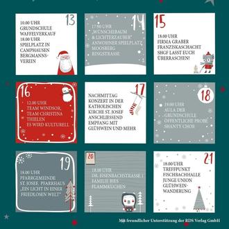 Noch ein Hinweis zum 15. Türchen am Freitag um 18.00 Uhr bei der SHGF, Firma Graber, im Gewerbegebiet Franziskaschacht. Von 17.30 bis 21.00 Uhr gibt es einen Bustransfer ab Marktplatz Fischbach und zurück.