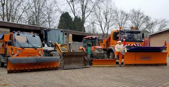Baubetriebshof-Mitarbeiter Joachim Feldes präsentiert die Winterdienst-Flotte. Inzwischen wurde das alte Multifunktionsfahrzeug „Fumo“ durch ein neues Fahrzeug ersetzt.