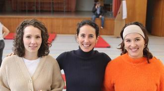 V.li.: Jasmin Nickels, Lisa Hoffmann und Talitha Hoffmann, die die Kinder in Malworkshops bei dem Erstellen der beiden Löwenbilder angeleitet hatte.