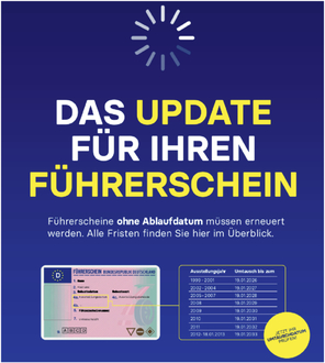 (*) Fahrerlaubnisinhaber, deren Geburtsjahr vor 1953 liegt, müssen den Führerschein bis zum 19. Januar 2033 umtauschen, unabhängig vom Ausstellungsjahr des Führerscheins.