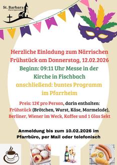 | Fi | 09:11 | Hl. Messe, anschl. Närrisches Treiben im Pfarrheim |