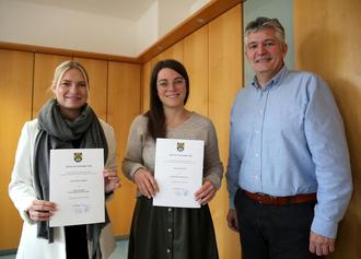 Die neue Frauenbeauftragte der Gemeindeverwaltung, Jasmin Eiler (Bildmitte), ihre Stellvertreterin Victoria Keller (links) und Bürgermeister Lutz Maurer.