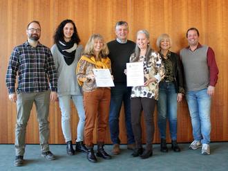 V.li.n.re.: Yannick von Ehren, Bianca Pütz, Sabine Kessler, Bürgermeister Lutz Maurer, Iris Gisela Wagner, Birgit Biehl und Karsten Schommer.