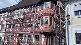 Baugerüst am Zunfthaus der Stadt Lambrecht (Pfalz)