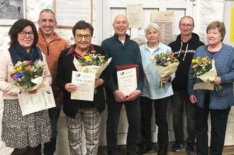 Für 25-jährige Mitgliedschaft wurden geehrt: Angela Dörrzapf, Irmgard Karrer und Ella Schaeffer; für 40-jährige Mitgliedschaft: Elfriede Hofmann und Werner Burckhardt.