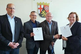 Die Direktorin des Amtsgerichtes Neustadt, Susanna Braun, verabschiedete Hans Seiberth aus dem Schiedsamt. Gleichzeitig wurde Erich Pojtinger seine Ernennungsurkunde zum stellvertretenden Schiedsmann für den Schiedsamtsbezirk Lambrecht überreicht, daneben Verbandsbürgermeister Gernot Kuhn (von rechts nach links).
