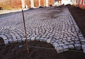 Die Pflasterarbeiten rund um die ehem. Klosterkirche haben begonnen