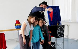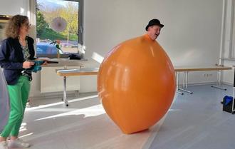 Zauberkünstler Benji Wiese verschwindet vor den Augen der Zuschauer in einen Ballon
