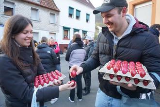 Einmal im Jahr für gut eine Stunde steht der Pickplatz in Lambrecht im Mittelpunkt eines fröhlichen Wettkampfes mit hartgekochten Eiern.
